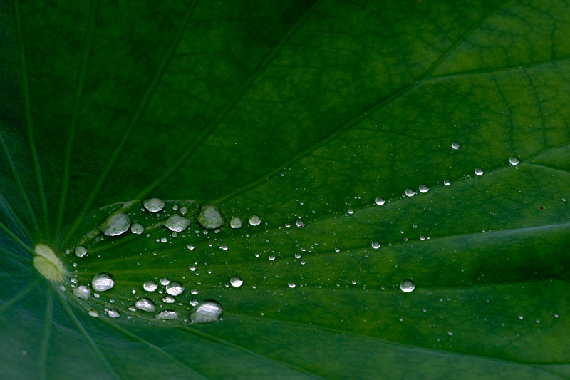 雨滴、蓮の葉の上に