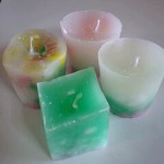 どんなキャンドルにしようかな?よーく考えて型の中に上手にいれてイメージどおりできたら、熱いサラサラのロウを流しいれます。