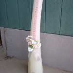中心に芯になるろうそくをたてて、おつぎはお楽しみのパーツをいれます。