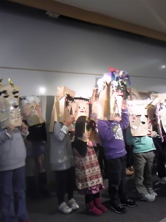 袋に目と口の穴を開けて、子供達が思うままに飾り付け!