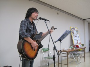 オープニングコンサートとして牛窓の“てれやカフェ”のオーナーでありシンガーソングライターの小林宏志さんにギターの弾き語りをお願いしました。