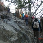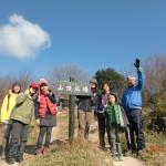 合格祈願も終わり、山頂へ向かう。朝は霜が降りるほど寒かったが、あまり風もなく絶好の登山日和。青空の下、昼食のおにぎりを食べ(カップラーメンの人もあり)満足しながら下山しまた。