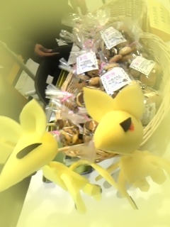 劇場で販売している、手作りクッキー。美味しくて、我が家は毎回購入!事前のワークショップで作ったキツネが、招き猫ならぬ招き狐をしてましたヨ