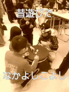 レトロ遊びのコーナーでは、ベーゴマなどが大人気。