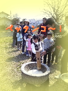 ギュッギュッと杵で、粒を潰すように動く中「早くしたい!」「ペッタンコは?」と催促(*^o^*)