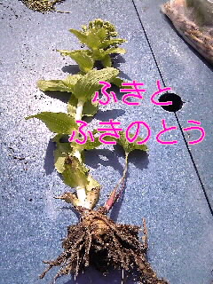 寒さに強い地下茎を持ち、地上に出るのは葉とその柄の部分、そしてフキノトウとして有名な花の部分。雌雄異株で黄色の花が雄株、白い花が雌株。