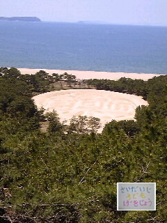 (銭形砂絵(ぜにがたすなえ)は、香川県観音寺市にある寛永通宝を模した巨大な砂絵。)