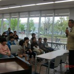 いよいよ探検。公園の中にある緊急時の為の水タンクとトイレ。くるくる回る風力。百花プラザの事務所の奥にある備蓄庫。屋上にあるソーラーパネル。階段を使った避難経路・・・普段見ることのできないところも見せていただき得した気分。勉強になりました。