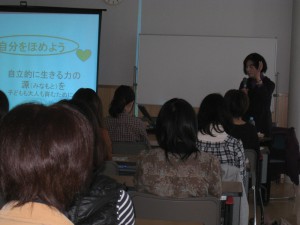 講師の手塚さんはNPO法人「自己尊重プラクティス協会」の代表理事で自己尊重感、自己肯定感を育てるためのトレーナーとして全国各地で講演・講座を開催されています。