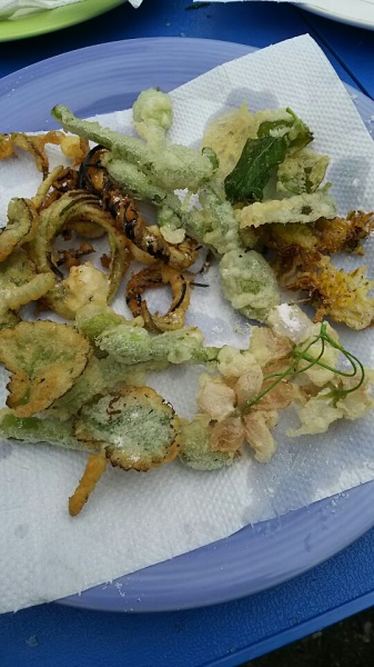 キャンプ場では、山菜(ふき、ゆきのした、よもぎ、いたどり、あけび、たんぽぽ、あざみ、さくら、こごみ、ねぎぼうずなど)のてんぷらとうどん、ちょっと苦みはあるけれど、自分達も採った事や珍しさやお友だちと一緒であることも食欲に繋がります。