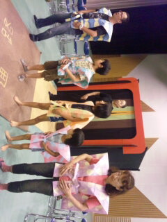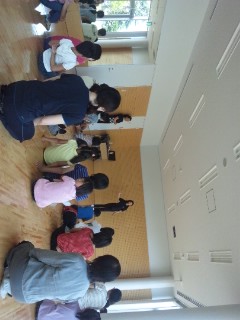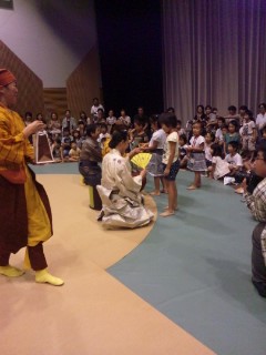 大成功のずっこけ狂言どろピカぽんでしたが、この公演の最初に、「携帯電話をきってね」「会場内は飲食禁止」などを会員親子にしてもらっちゃいました☆