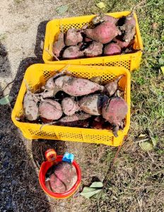 甘みを増すため、しばらく天日干しして収穫祭に備えます。いもほり隊の皆さん、お疲れさまでした~!