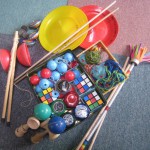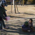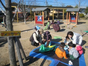 西大寺緑花公園の砂場や遊具がある場所に、プレイキットを並べてあそびました。
