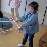 その後、調理室で3班に分かれてケーキ作りです。奮発したイチゴを落とさないように慎重に洗ったり、缶詰のフルーツを恐る恐る切ったり、わいわい言いながらケーキは出来上がりました。楽しく食べた後は外で元気に遊びましたよ。 続きを読む